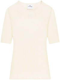Solar ribbed sweater Highlights - Off-white - Cotton-merino wool blend - Knitted construction - Logo patch to the front - Round neck - Short sleeves - Straight hem Made in Italy Composition Cotton 80%, Merino 20%