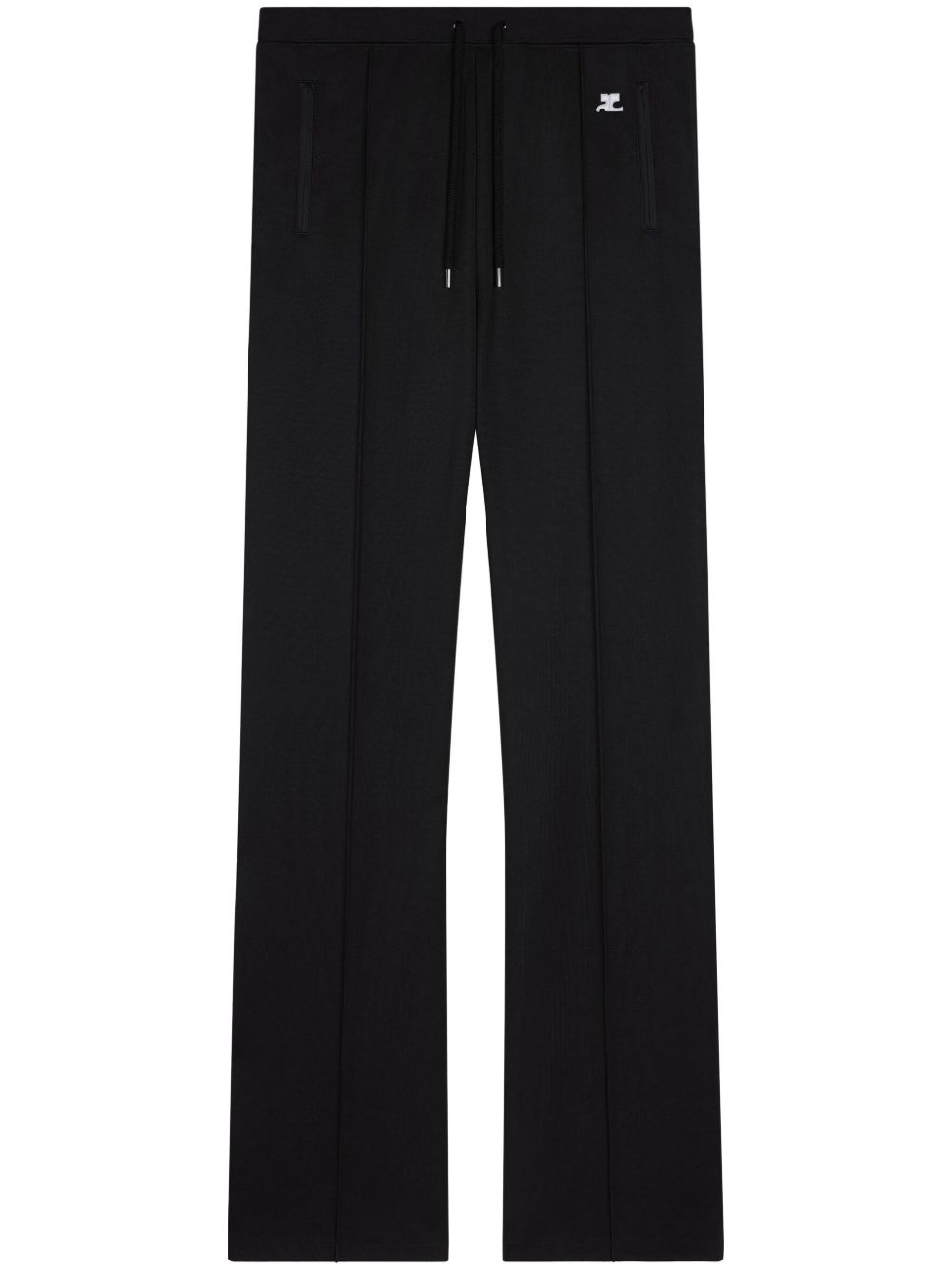 straight-leg track pants Highlights - Black - Interlock weave - Embroidered logo to the front - Drawstring waist - Mid-rise - Straight leg - Front zip fastening pockets Imported Composition Polyester 100%