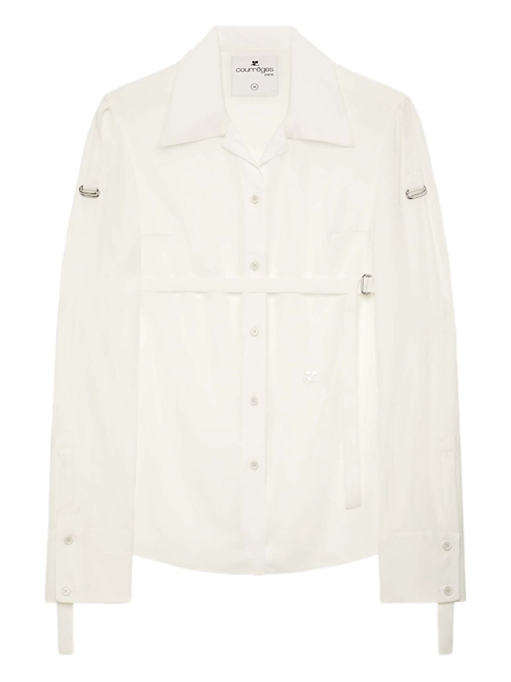 strap shirt Highlights - Off-white - Button fastening - Long sleeves - Cuff straps - Strap detail Made in Italy Composition Viscose 82%, Silk 18% Washing instructions Read Manufacturer Guidelines