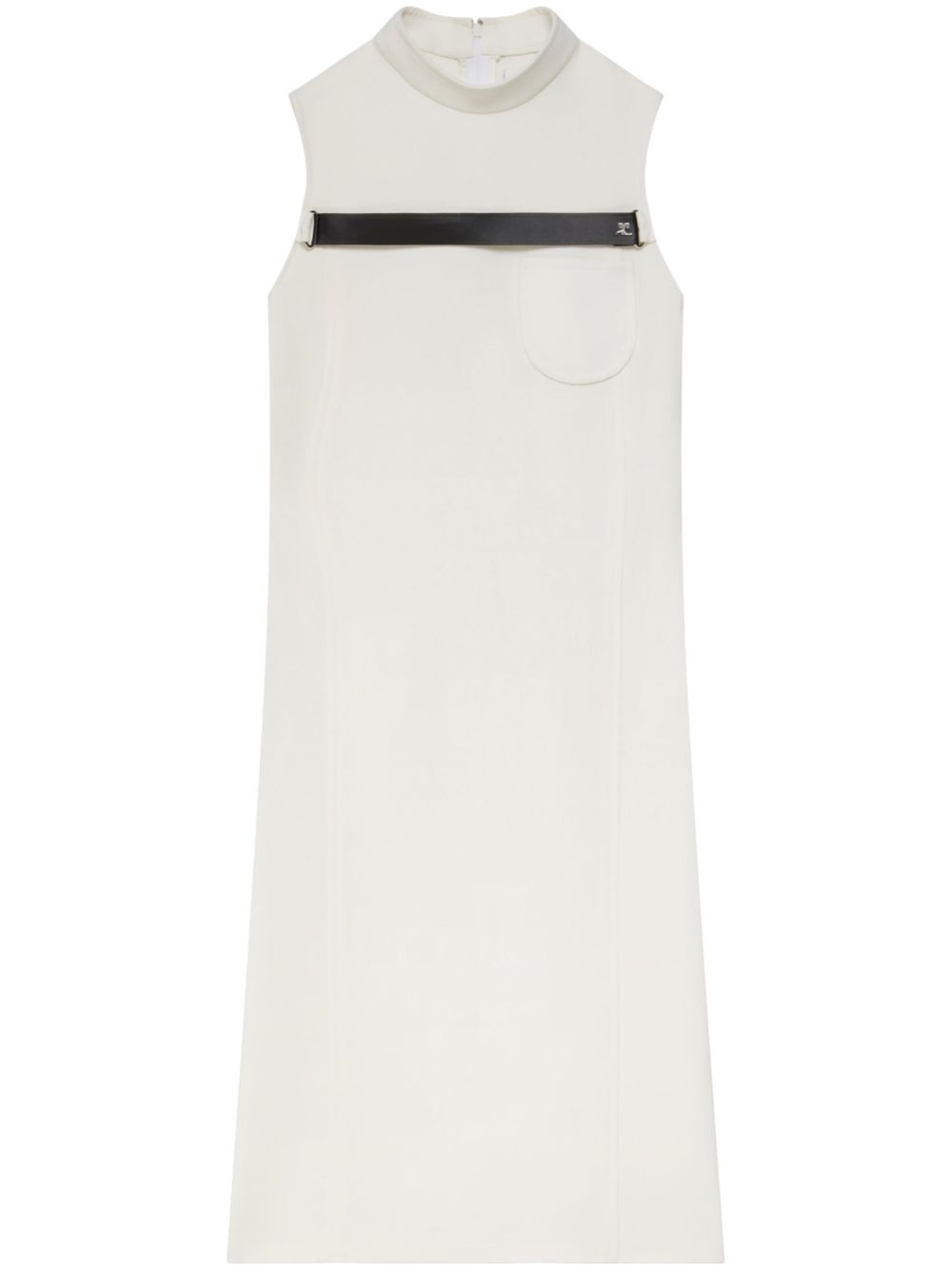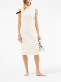 straped tailored twill dress Highlights - Ivory white - Twill weave - Logo plaque - High neck - Chest patch pocket - Strap detailing - Sleeveless - Straight hem - Mid-length Made in Italy Composition Polyester 83%, Acetate 17% Washing instructions Read Manufacturer Guidelines