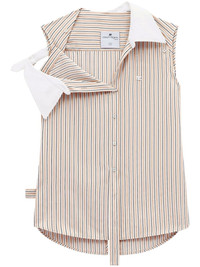 striped shirt Highlights - Brown/white - Poplin texture - Vertical stripe print - Embroidered logo at the chest - Asymmetric collar - V-neck - Sleeveless - Curved hem Made in Italy Composition Polyester 100%