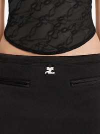 tailored high-waisted skirt Highlights - Black - Two front pockets - Logo detailing at the waistband - Back vent - Smooth finish Made in Italy Composition Polyester 100% Washing instructions Read Manufacturer Guidelines