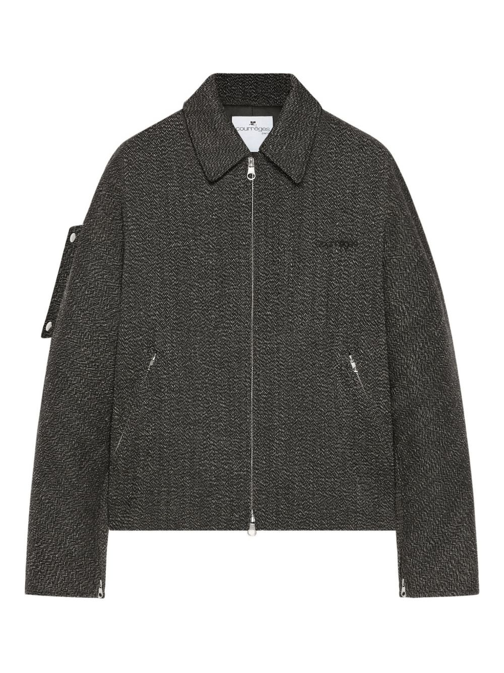 textured zip-up jacket Highlights - Grey - Zip fastening - Two side pockets - Buttoned sleeve pocket - Stand collar Imported Composition Wool 100% Washing instructions Read Manufacturer Guidelines