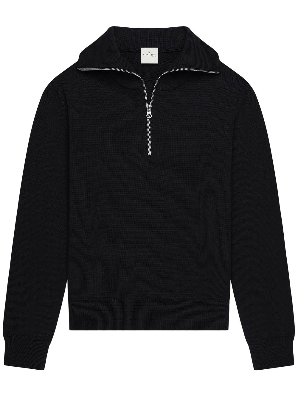 trucker wool sweater Highlights - Black - Wool - Short front zip fastening - Fine knit - Embroidered logo to the front - V-neck - Ribbed cuffs and hem Imported Composition Cotton 67%, Polyamide 30%, Fabric 3%