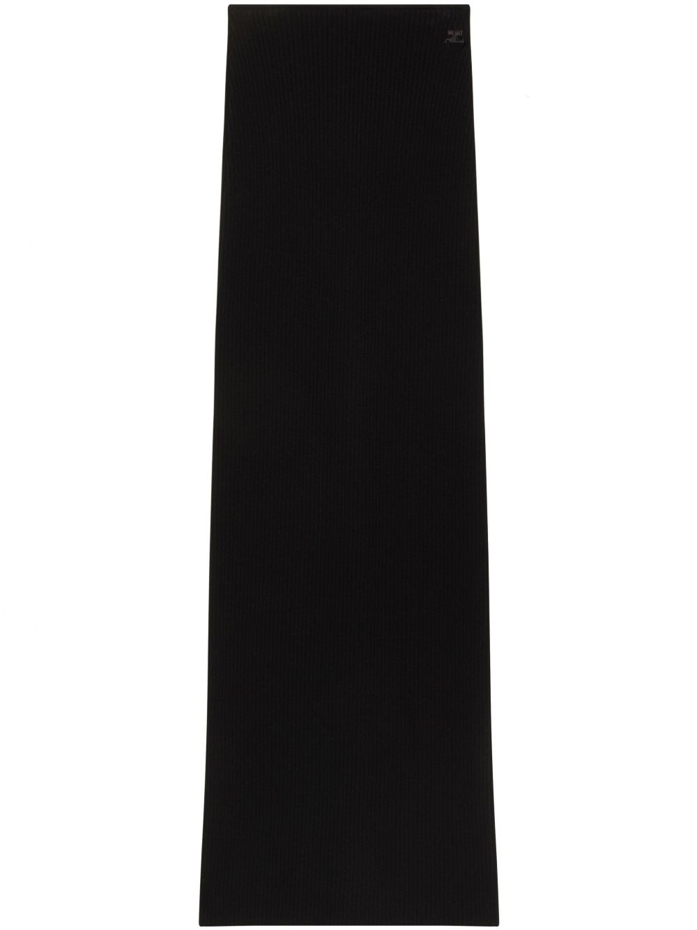 tube ribbed-knit maxi skirt Highlights - Black - Ribbed knit - Applique logo - Seamless - Tube design - Pull-on style - Rear slit - Straight hem - Floor-length Imported Composition FSC Viscose 70%, Polyester 30%