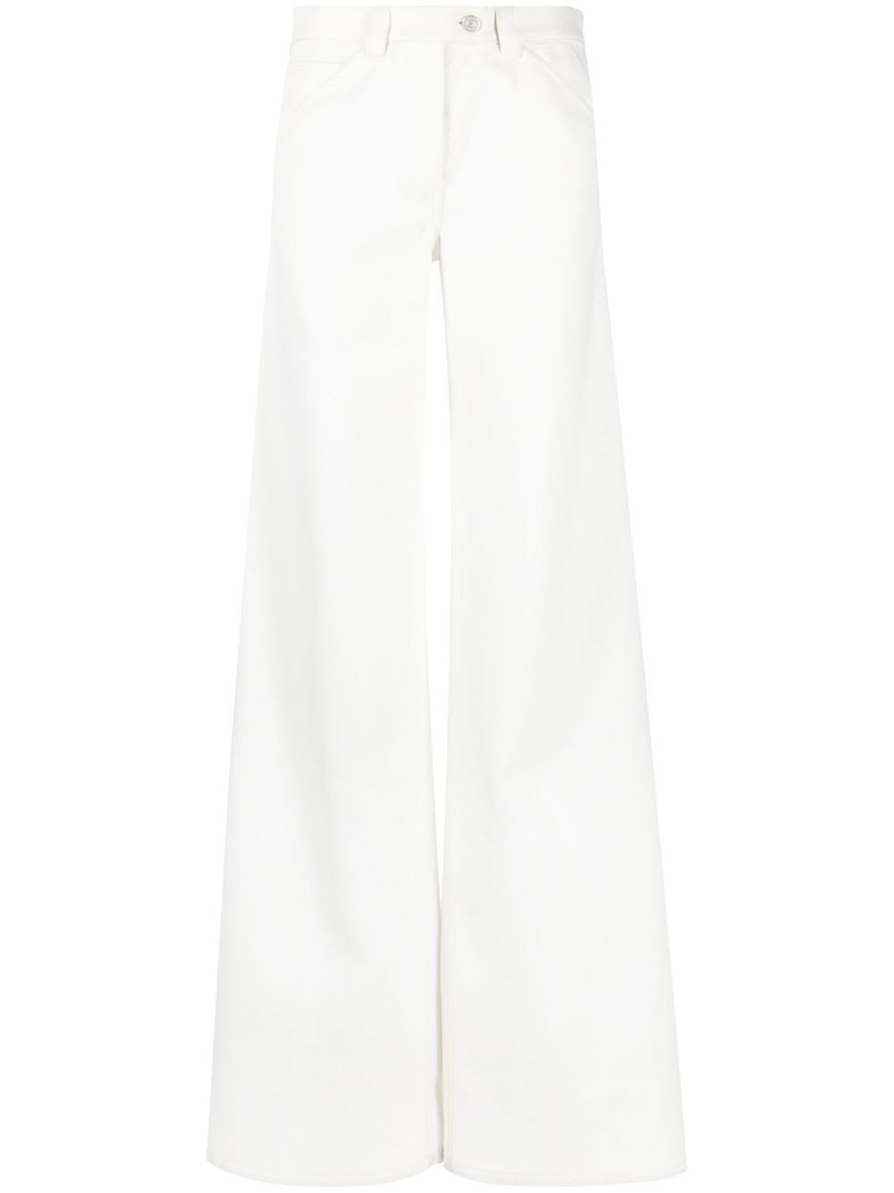 twill baggy trousers twill baggy trousers from COURREGES featuring white, cotton, belt loops, high waist, wide leg and twill weave. Imported Composition Outer: Cotton 100%, Polyester 100% SIZE & FIT Model measurements Height 5 ft 11 in(1.8 m) Bust/Chest 31.49 in(80 cm) Hips 35.82 in(91 cm) Waist 24.8 in(63 cm) FittingInformation This piece fits true to size. We recommend you get your regular size Designed to be fitted at the waist and hips, loose over the leg Made with a mid-weight fabric