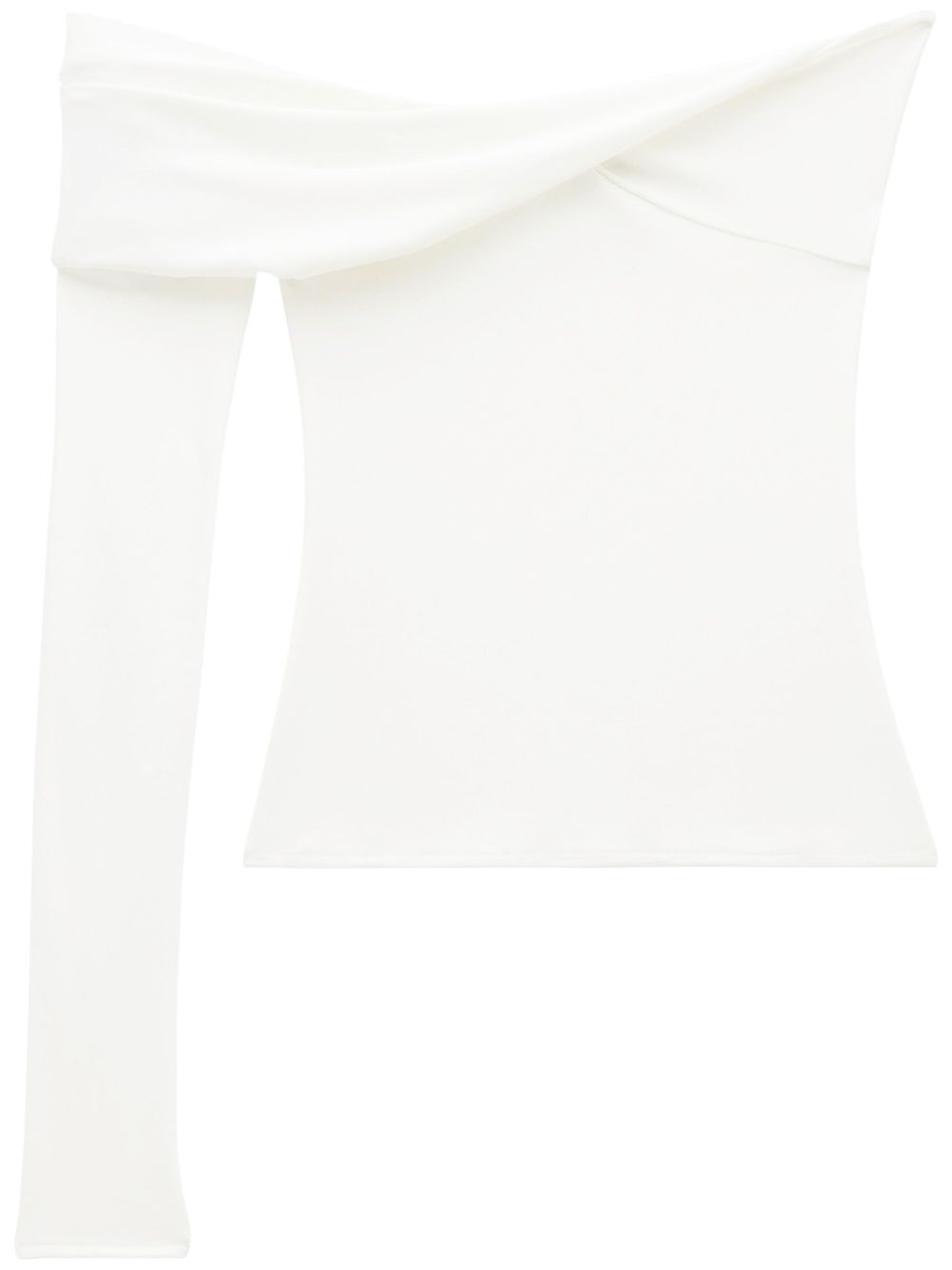 twisted jersey top Highlights - White - Crepe texture - Twist detailing - Stretch-design - Single long sleeve - Straight hem Made in France Composition Viscose 95%, Elastane 5%
