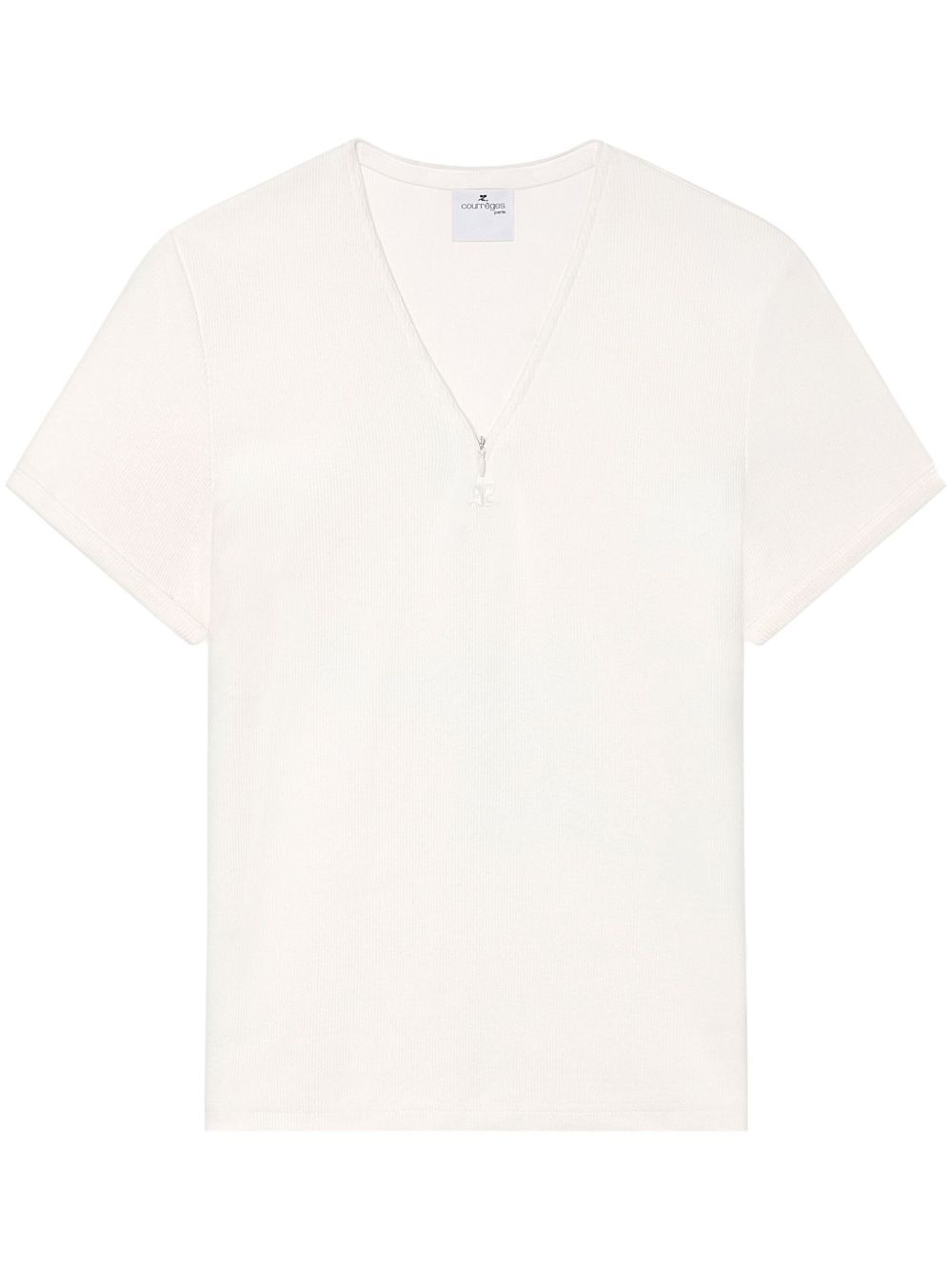 V-neck cotton-blend T-shirt Highlights - Off-white - Stretch-cotton - Embroidered logo to the front - Decorative zip detailing - V-neck - Short sleeves - Straight hem Imported Composition Cotton 97%, Elastane 3% Washing instructions Read Manufacturer Guidelines
