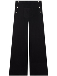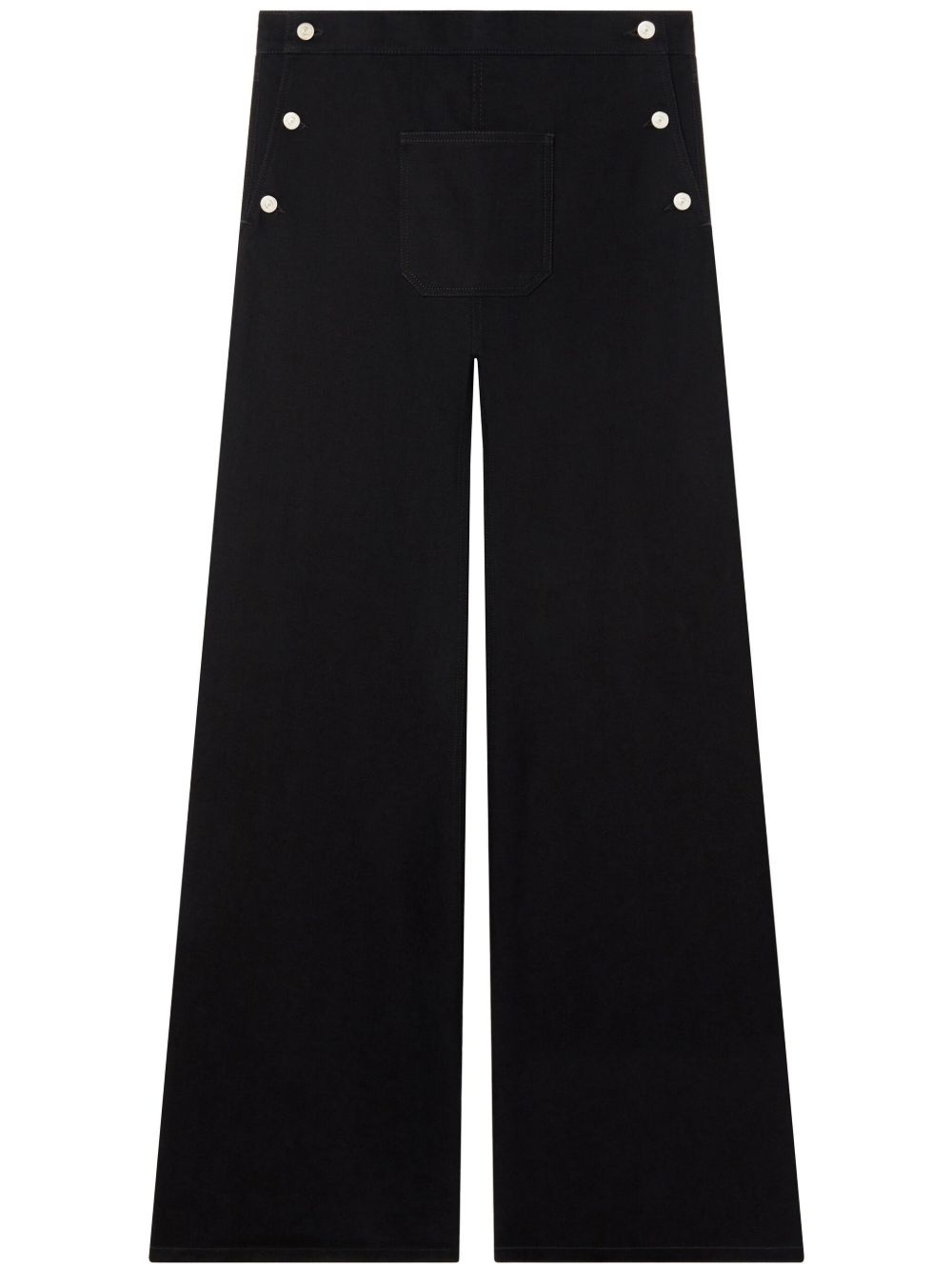 wide-leg cotton-blend trousers Highlights - Black - Cotton blend - Twill weave - Side button fastening - Mid-rise - Wide leg - Front jetted pocket Imported Composition Cotton 98%, Elastane 2%