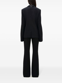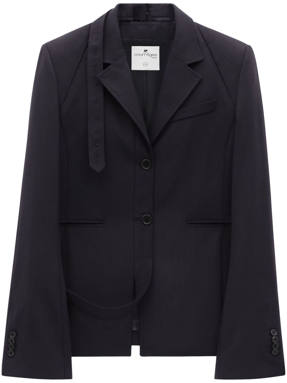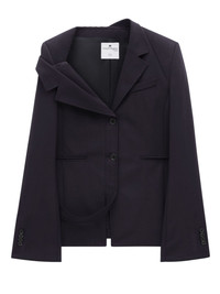 wool blazer Highlights - Black - Wool blend - Twill weave - Asymmetric design - Shoulder pads - Classic lapels - V-neck - Front button fastening - Long sleeves - Buttoned cuffs - Chest welt pocket - Two front jetted pockets - American rear vent - Straight hem Imported Composition Wool 95%, Elastane 5%