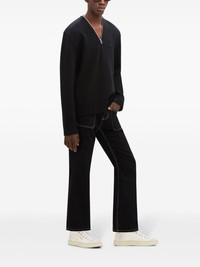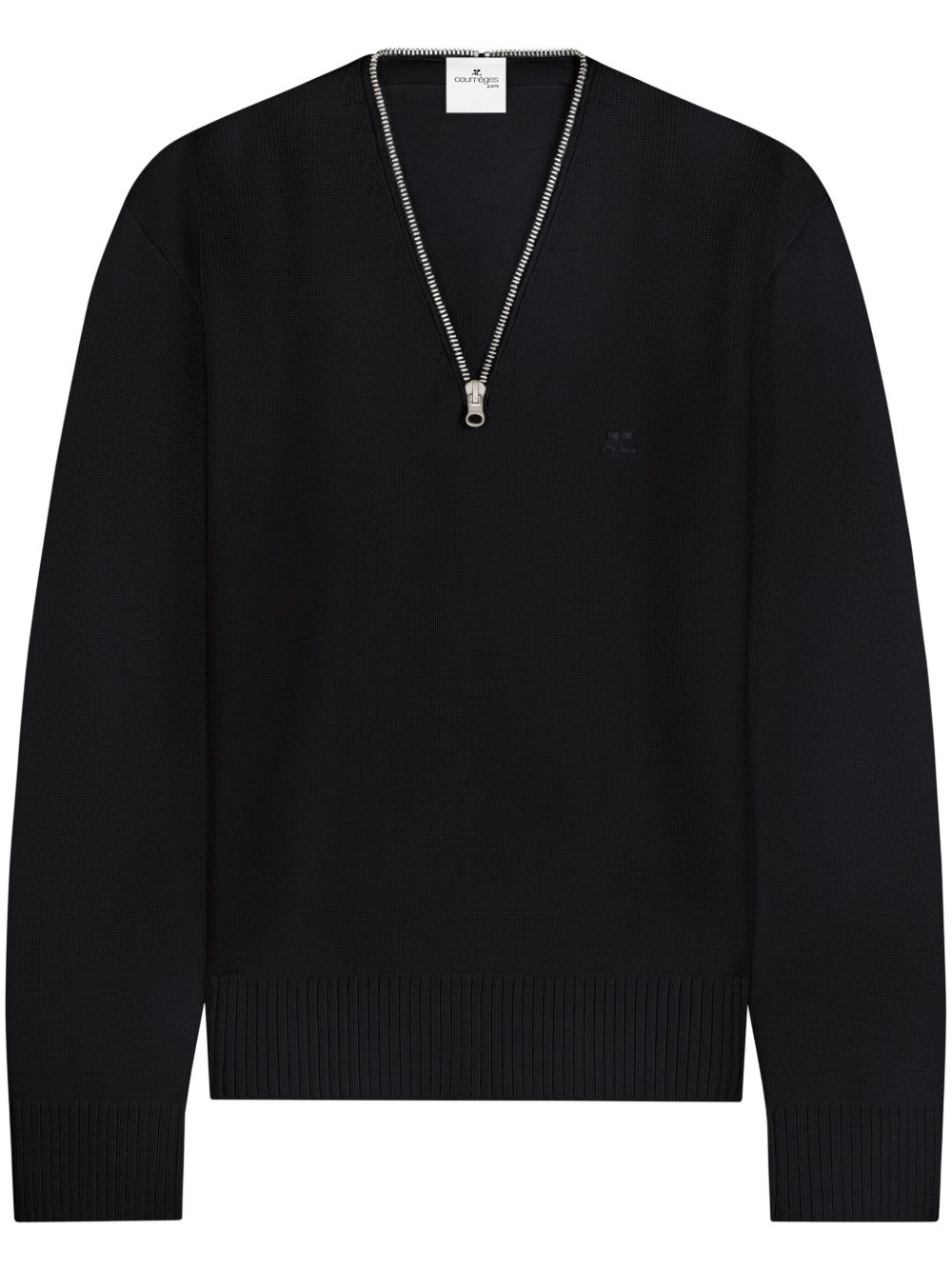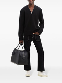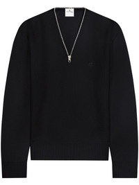 zip-detailing wool sweater Highlights - Black - Wool - Knitted construction - Embroidered logo at the chest - V-neck - Short front zip fastening - Long sleeves - Ribbed cuffs and hem - Straight hem - When buying this unisex item, keep in mind that it is graded in standard men's sizing. Imported Composition Wool 100% Washing instructions Read Manufacturer Guidelines