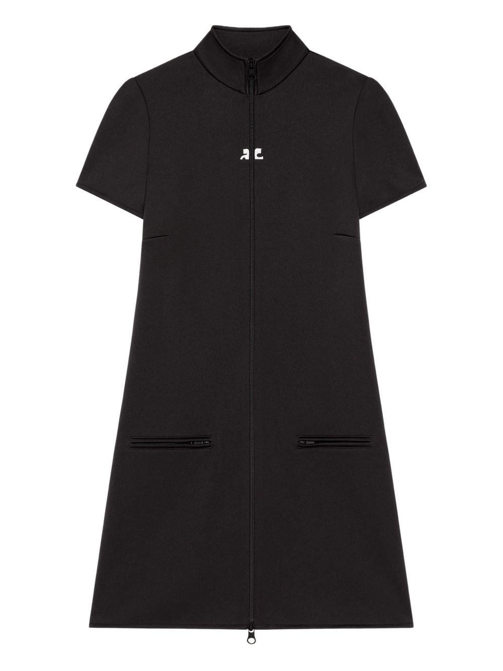 zip-front short-sleeve dress Highlights - Black - Zip fastening - Short sleeves - Two front pockets - Stand collar - Logo detail at the chest Made in Italy Composition Polyester 100%