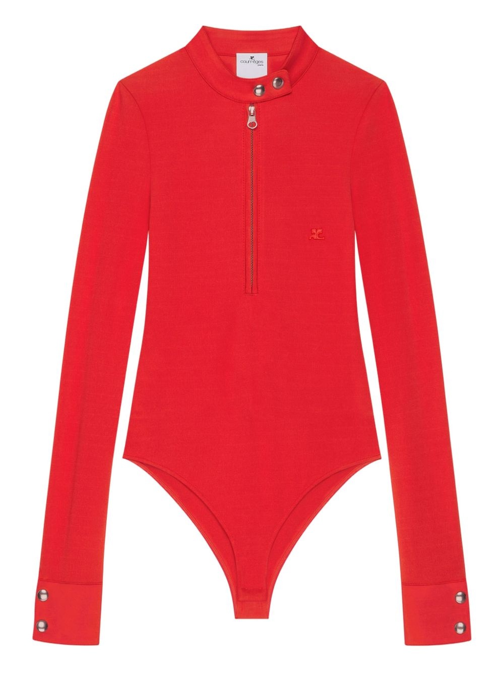 zip-up body Highlights - Bright red - Long sleeves - High collar - Zip fastening - Button detail at cuffs Made in France Composition Outer: Viscose 94%, Elastane 6% Washing instructions Read Manufacturer Guidelines