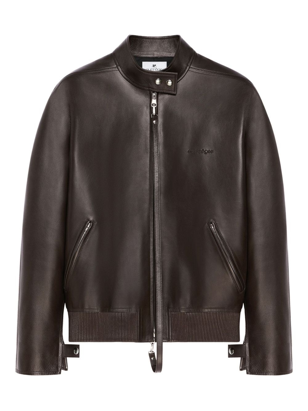 zip-up leather jacket Highlights - Brown - Front zip fastening - Ribbed hem - Side zip pockets - Logo detailing Made in France Composition CALFSKIN 100%