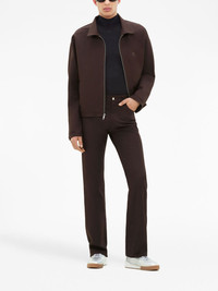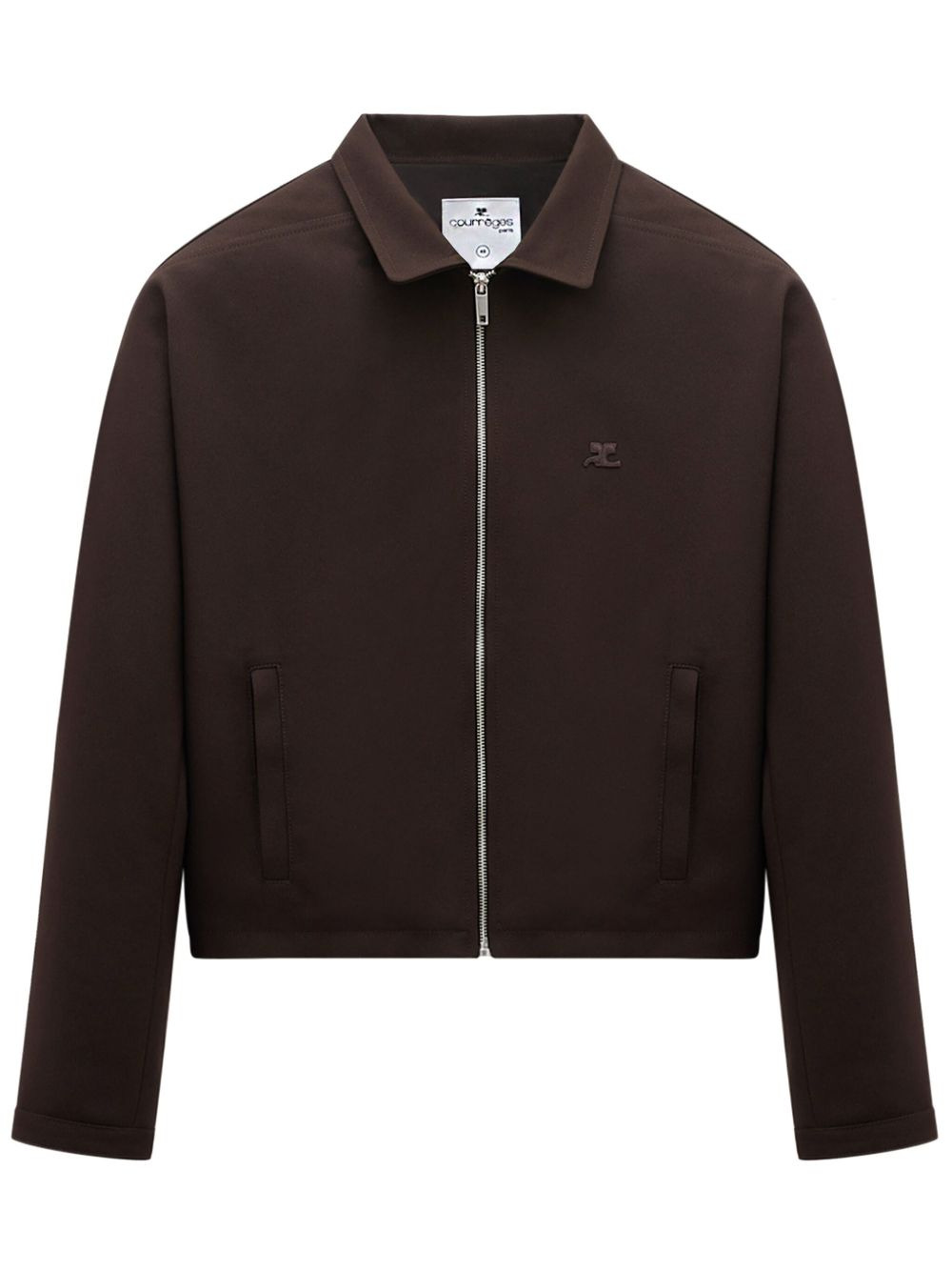zip-up twill bomber jacket Inspired by vintage aesthetics, this Courreges bomber jacket comes in a rich chocolate brown hue. Crafted from twill, it is fastened with a front zip and boasts a tonal raised logo on the chest. Highlights - Chocolate brown - Wool blend - Twill weave - Raised logo detail - Classic collar - Front zip fastening - Long sleeves - Cuff zips - Two side welt pockets - Rear elasticated hem Imported Composition Wool 50%, Polyurethane 19%, Polyester 18%, Polyamide 13%