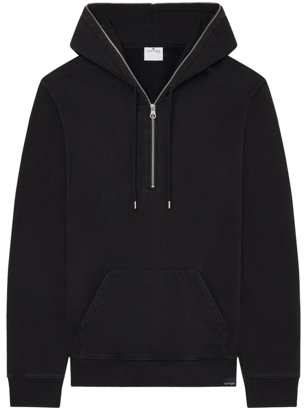 zipped fleece hoodie Highlights - Black - Cotton - Drawstring hood - Half front zip fastening - Front pouch pocket - Long sleeves - Straight hem - When buying this unisex item, keep in mind that it is graded in standard men's sizing. Imported Composition Cotton 100%