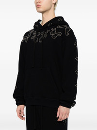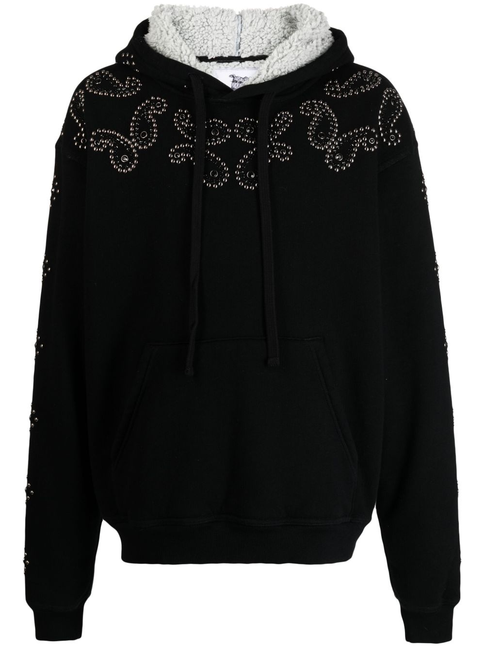 bead-embellished Western-style hoodie Highlights - Black - Cotton blend - Fleece texture - Bead embellishment - Western style - Drawstring hood - Drop shoulder - Long sleeves - Front pouch pocket - Ribbed cuffs and hem Made in United States Composition Cotton 50%, Polyester 50% SIZE & FIT Model measurements Height 6 ft 2 in(1.89 m) Bust/Chest 37.4 in(95 cm) Hips 36.61 in(93 cm) Waist 28.34 in(72 cm) FittingInformation Designed to be unstructured, offering a loose fit throughout Made from a heavyweight non-stretch fabric, this piece offers minimal elasticity when worn This piece fits true to size – take your usual size