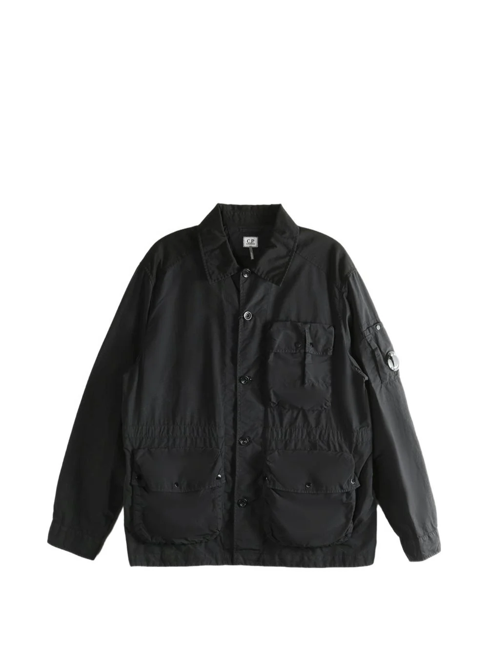 buttoned multi-pocket jacket Highlights - Black - Button fastening - Point collar - Chest pocket - Multi-pocket design - Long sleeves - C.p. company suggests removing any detachable accessories before washing. Imported Composition Outer: Recycled Polyamide 100% Lining: Cotton 100% Washing instructions Machine Wash
