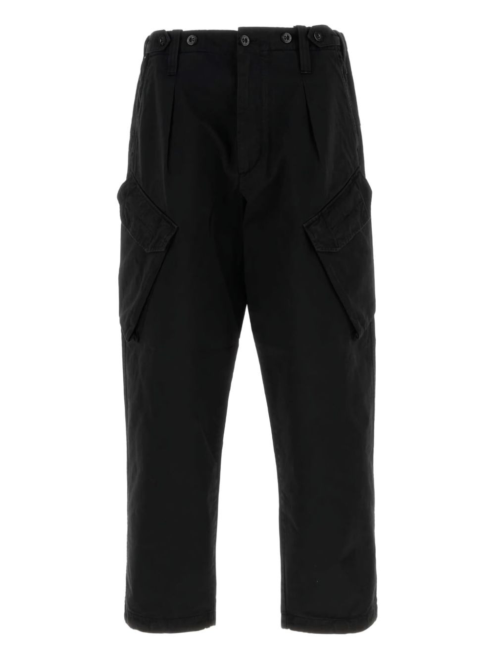 cargo pocket cotton trousers Highlights - Black - Cotton - Pleated front - Button fastening - Cargo pockets - Flap pockets Imported Composition Cotton 100% Washing instructions Read Manufacturer Guidelines
