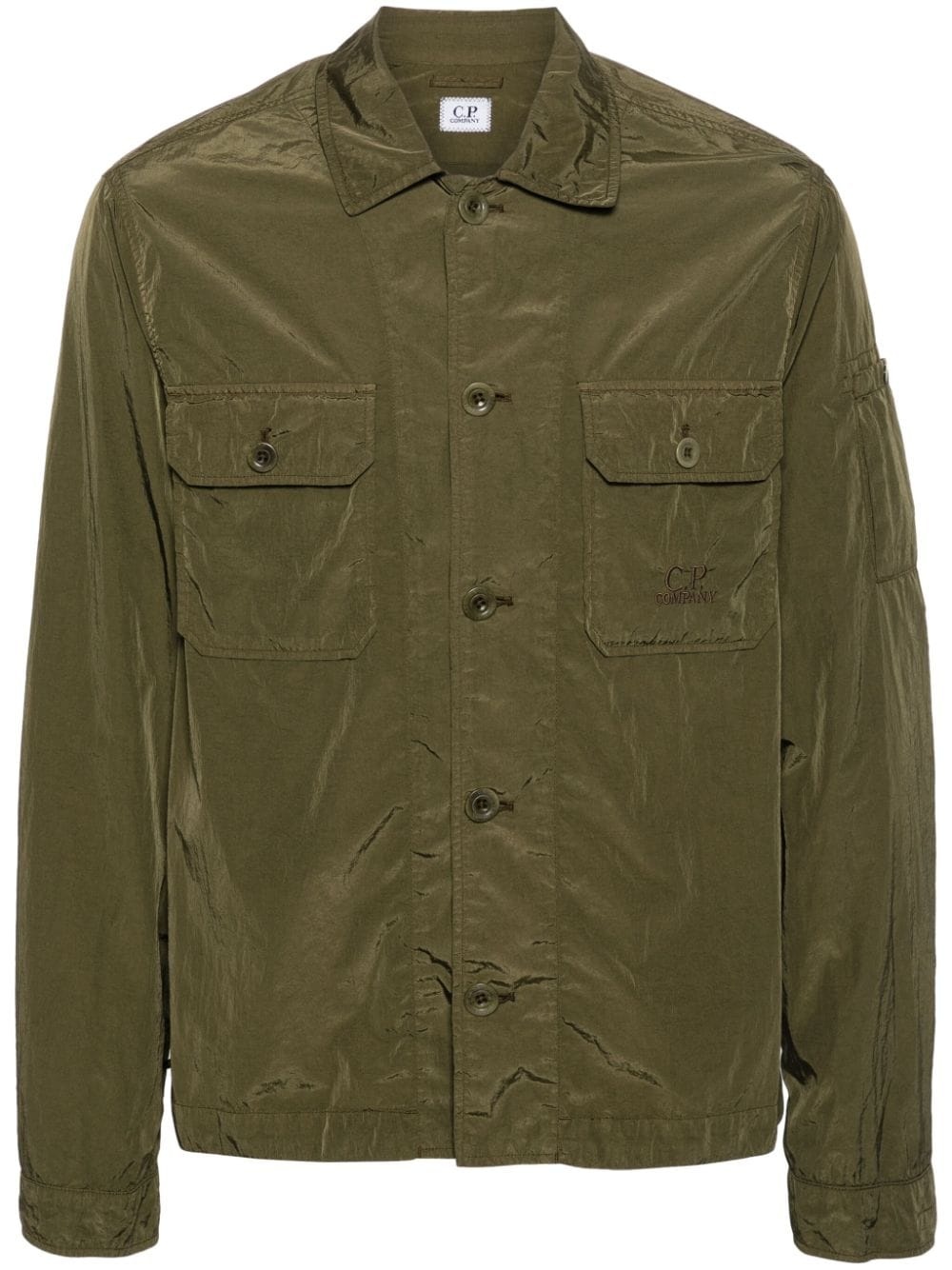 Chrome-R shirt jacket Highlights - Olive green - Garment dyed - Embroidered logo at the chest - Signature lens detail - Classic collar - Front button fastening - Long sleeves - Buttoned cuffs - Two chest flap pockets - Straight hem Imported Composition Polyamide 100% SIZE & FIT Model measurements Height 6 ft 1 in(1.85 m) Bust/Chest 38.58 in(98 cm) Hips 37 in(94 cm) Waist 30.31 in(77 cm) FittingInformation Designed for a regular fit, allowing for a comfortably loose fit throughout the body Made from a lightweight non-stretch fabric This piece fits true to size – take your usual size