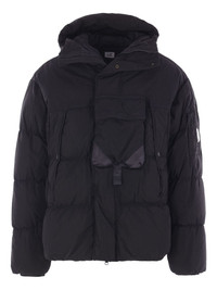 C.P. COMPANY Coats Black Padded and quilted jacket with high collar. Large pocket on the front and front closure with zip and buttons. Lens detail on the arm, oversize fit, black color100% PA Imported Composition Polyamide 100%