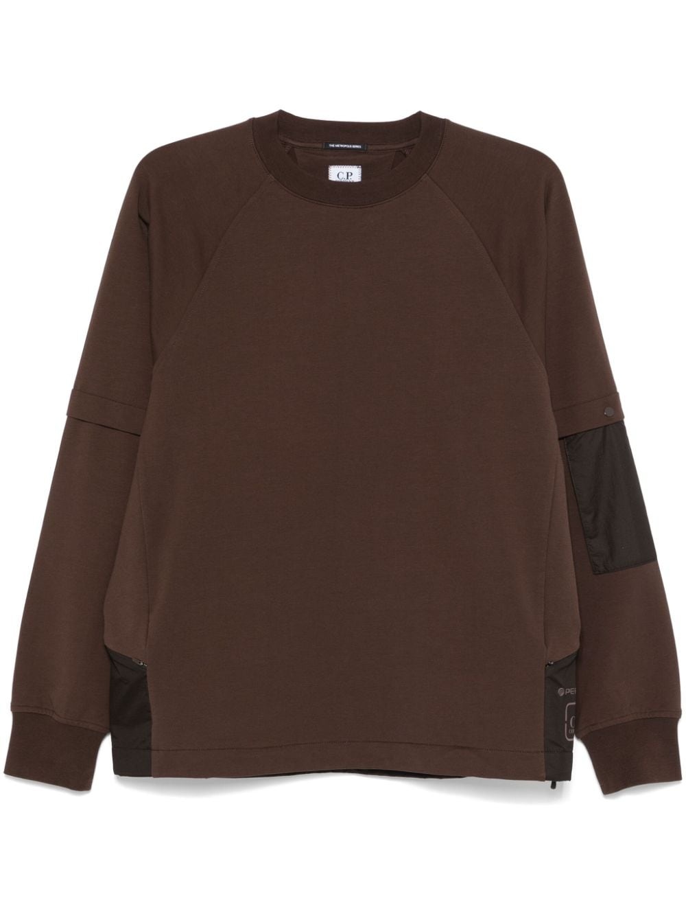 crew neck sweater Highlights - Brown - Cotton blend - Jersey texture - Crew neck - Long sleeves - Sleeve patch pocket - Ribbed cuffs - Logo print to the side - Rear zip-fastening pocket - Straight hem Imported Composition Polyamide 100%, Cotton 95%, Elastane 5% SIZE & FIT Model measurements Height 6 ft 1 in(1.85 m) Bust/Chest 35.82 in(91 cm) Hips 37.79 in(96 cm) Waist 29.13 in(74 cm) FittingInformation Designed for a relaxed fit, this piece allows for comfort and movement when worn Made from a midweight non-stretch fabric, this piece offers minimal elasticity when worn