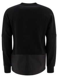 crew neck sweatshirt Highlights - Black - Stretch-cotton - Jersey texture - Panelled design - Crew neck - Long raglan sleeves - Sleeve press-stud fastening pocket - Ribbed cuffs - Two rear zip-fastening pockets - Drawstring straight hem Imported Composition Cotton 95%, Elastane 5% SIZE & FIT FittingInformation Designed for a relaxed fit, this piece allows for comfort and movement when worn Made from a midweight non-stretch fabric, this piece offers minimal elasticity when worn