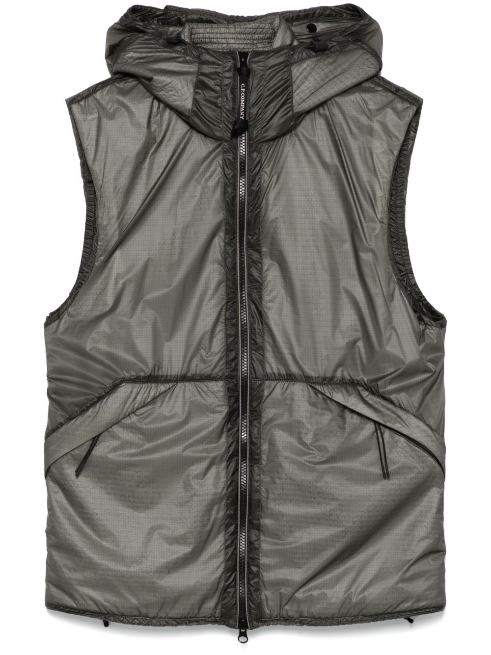 Goggle-detail gilet Highlights - Charcoal grey - Front two-way zip fastening - Drawstring hood - Two side zip-fastening pockets - C.p. company suggests removing any detachable accessories before washing. Imported Composition Outer: Polyamide 100% Lining: Polyester 100%, Polyamide 100% SIZE & FIT Model measurements Height 6 ft 1 in(1.85 m) Bust/Chest 35.82 in(91 cm) Hips 37.79 in(96 cm) Waist 29.13 in(74 cm) FittingInformation Designed for a slim fit, offering a comfortable fit that sits just away from the body The internal drawstring at the hem allows for fitted preferences Made from a padded non-stretch fabric, giving it no natural elasticity Washing instructions Machine Wash