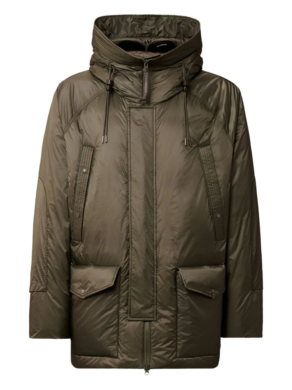 Goggle-detail puffer jacket Highlights - Olive green - Drawstring hood - Concealed zip and press-stud fastening - Long sleeves - Front flap pockets - Signature goggle detail - C.p. company suggests removing any detachable accessories before washing. Imported Composition Polyamide 100% Washing instructions Read Manufacturer Guidelines