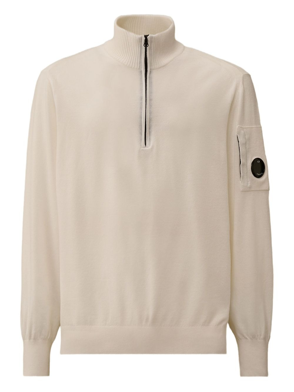 half-zip lens-pocket sweater Highlights - Off-white - Half-zip fastening - Ribbed cuffs - Ribbed hem - High neck - Lens pocket - C.p. company suggests removing any detachable accessories before washing. Imported Composition Virgin Wool 88%, Polyester 12% Washing instructions Read Manufacturer Guidelines