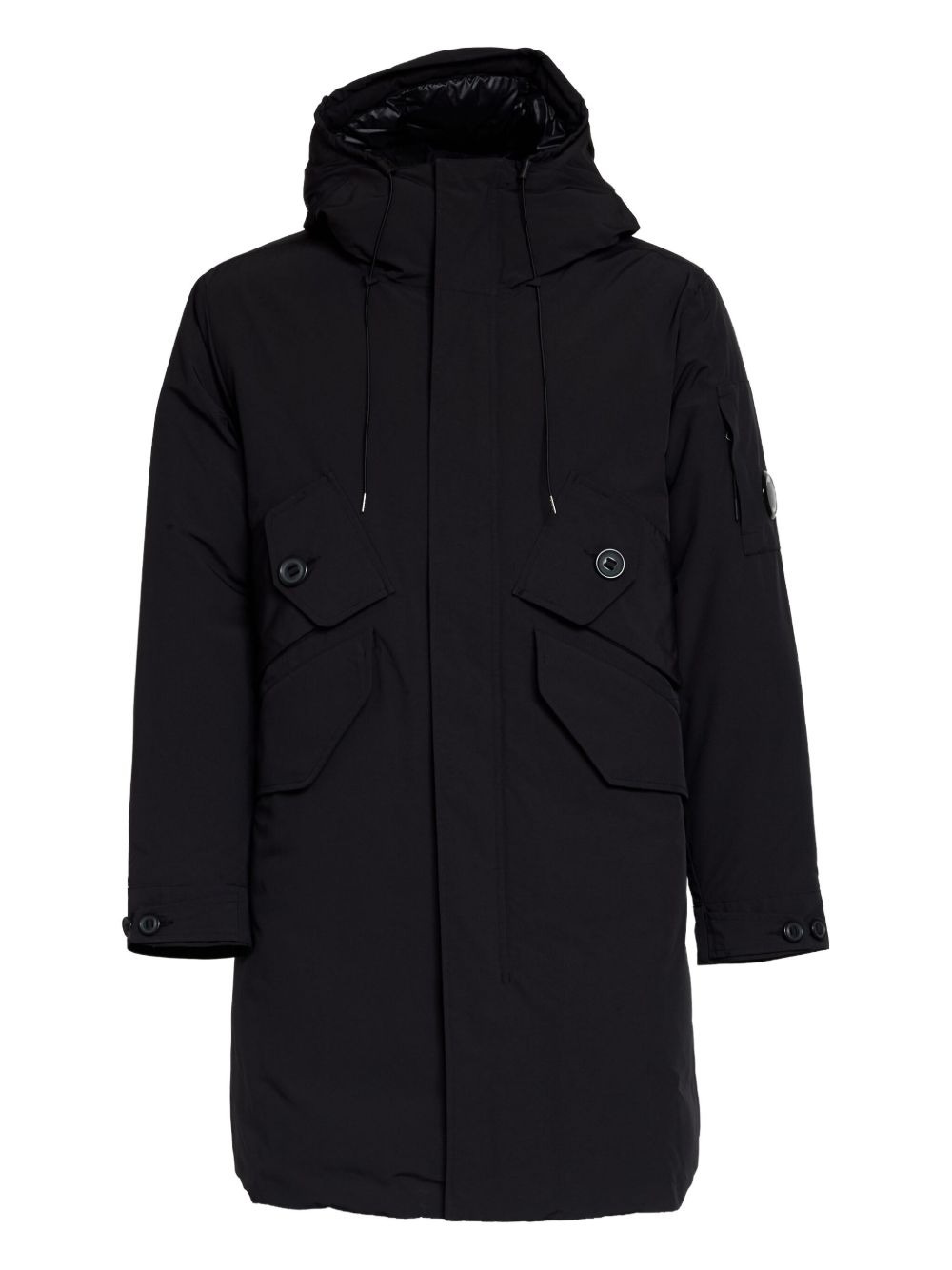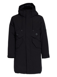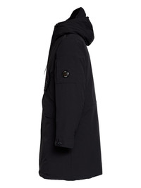 hooded coat Highlights - Black - Hooded - Button fastening - Long sleeves - Front flap pockets - Logo patch Imported Composition Polyester 100% Washing instructions Read Manufacturer Guidelines