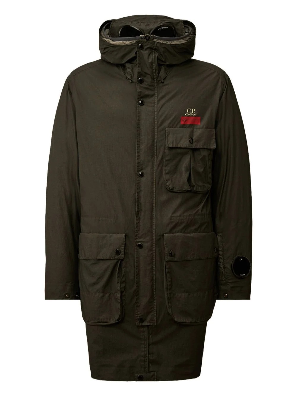 hooded pocket coat Highlights - Dark green - Hooded - Goggle detail on hood - Button fastening - Multiple pockets - Logo patch Imported Composition Outer: Polyamide 100% Lining: Polyamide 100%, Duck Down 90%, Duck Feathers 10% Washing instructions Read Manufacturer Guidelines