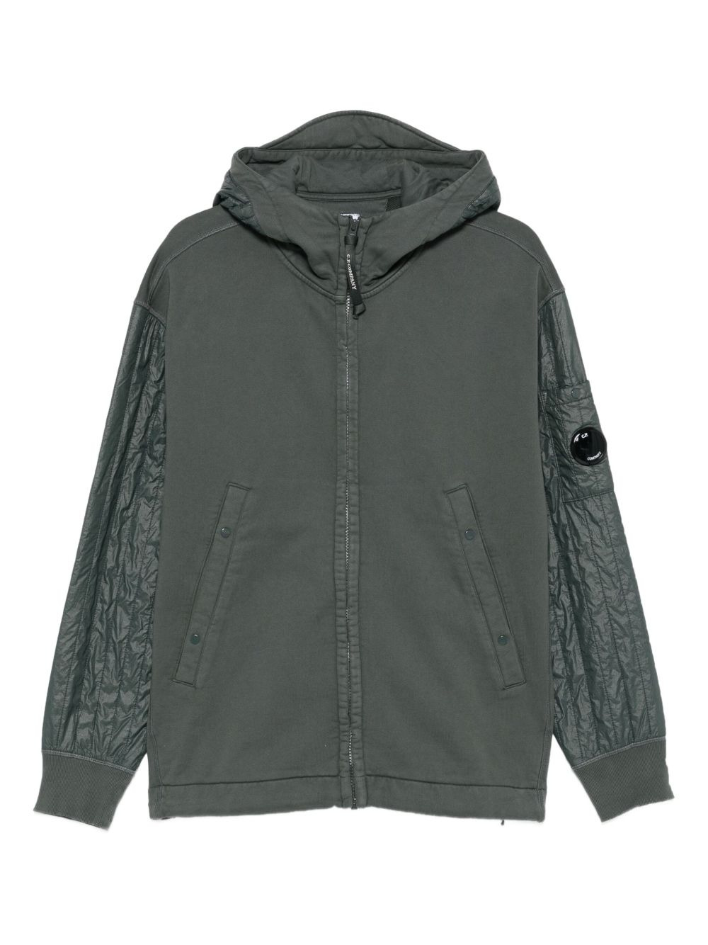 hooded quilted-sleeve zip-up jacket Highlights - Grey - Hooded neckline - Zip fastening - Quilted sleeves - Welt pockets - Button detailing - C.p. company suggests removing any detachable accessories before washing. Imported Composition Lining: Polyester 100% Outer: Cotton 100%, Polyamide 100% SIZE & FIT Model measurements Height 6 ft 1 in(1.85 m) Bust/Chest 35.82 in(91 cm) Hips 37.79 in(96 cm) Waist 29.13 in(74 cm) Washing instructions Machine Wash