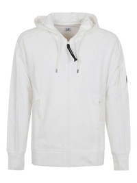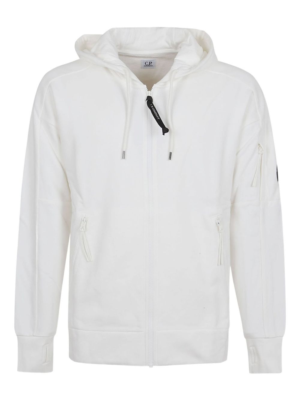 hooded zip-up sweatshirt Highlights - White - Hooded neckline - Front zip fastening - Zip fastening pockets - Logo detail - Thumb slot Imported Composition Cotton 100%