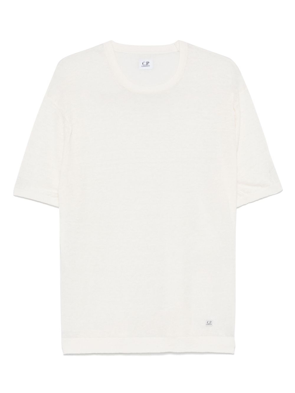 knitted T-shirt Highlights - White - Crew neck - Short sleeves - Mini logo tag - C.p. company suggests removing any detachable accessories before washing. Imported Composition Linen/Flax 100% SIZE & FIT Model measurements Height 6 ft 2 in(1.87 m) Bust/Chest 36.22 in(92 cm) Hips 37 in(94 cm) Waist 27.95 in(71 cm) FittingInformation Designed for a relaxed fit, this piece allows for comfort and movement when worn Made from a midweight non-stretch fabric, this piece offers minimal elasticity when worn