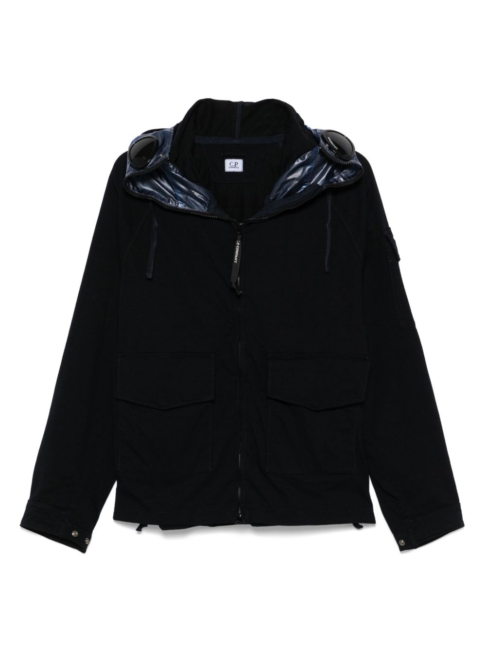 KNJ jacket Highlights - Black - Front two-way zip fastening - Two side flap pockets - Signature goggles detail - C.p. company suggests removing any detachable accessories before washing. Imported Composition Outer: Polyamide 100%, Polyurethane 100% Lining: Polyamide 100% SIZE & FIT Model measurements Height 6 ft 2 in(1.89 m) Bust/Chest 36.22 in(92 cm) Hips 37.79 in(96 cm) Waist 29.52 in(75 cm) FittingInformation Designed for a regular fit, allowing for a comfortably loose fit throughout the body The internal drawstring at the hem allows for fitted preferences Made from a midweight non-stretch fabric
