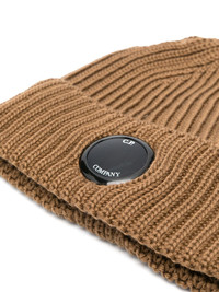 Lens-detail beanie Highlights - Ochre brown - Wool - Fisherman's knit - Round crown - Turn-up hem - Pull-on style - Authenticity qr code - C.p. company suggests removing any detachable accessories before washing. Made in Italy Composition Wool 100%