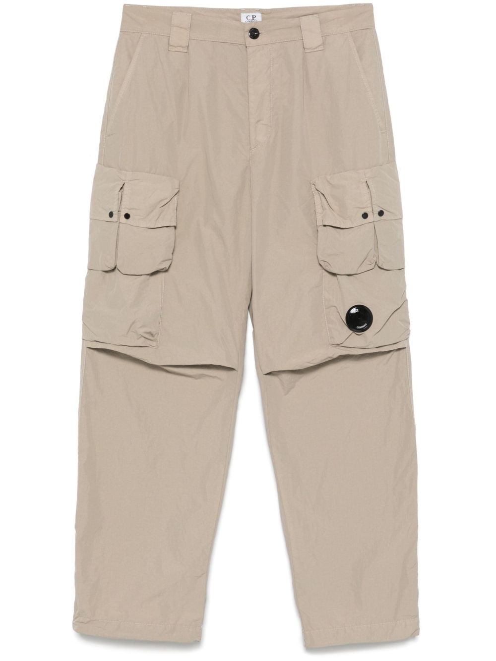 Lens-detail cargo trousers Highlights - Beige - Button fly fastening - Two side slit pockets - Two rear flap pockets - C.p. company suggests removing any detachable accessories before washing. Imported Composition Polyamide 100% SIZE & FIT Model measurements Height 6 ft 1 in(1.86 m) Bust/Chest 37.4 in(95 cm) Hips 36.22 in(92 cm) Waist 29.52 in(75 cm) FittingInformation Designed for a relaxed tapered leg, allowing a comfortable loose fit above the knee with a closer fit towards the calves Made from a lightweight non-stretch fabric