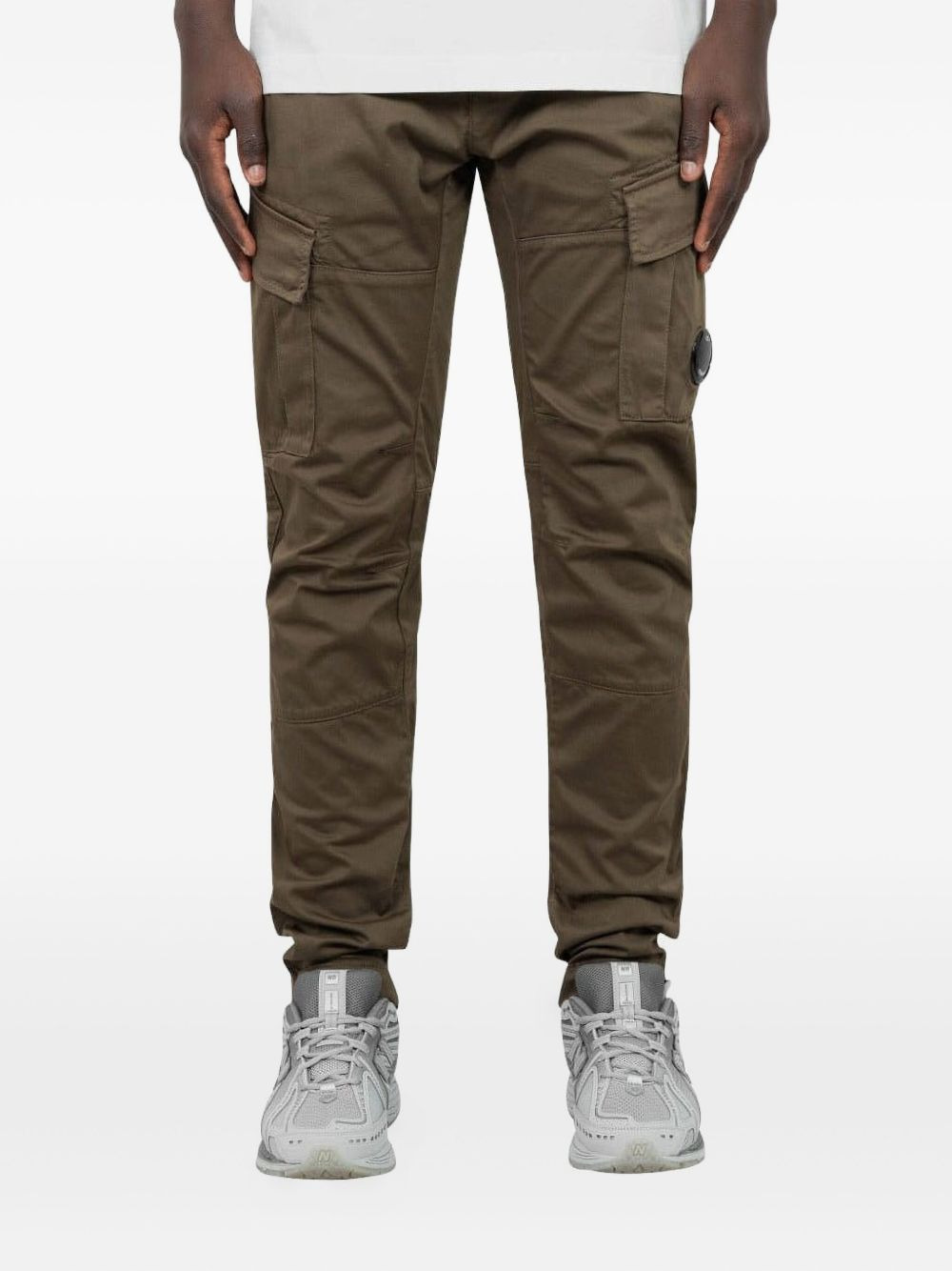 Lens-detail cargo trousers Highlights - Brown - Cargo pockets - Signature lens detail - Straight leg - Button fly - C.p. company suggests removing any detachable accessories before washing. Imported Composition Fabric 100% SIZE & FIT FittingInformation Designed for a slim fit, offering a comfortable fit that sits just away from the leg Made from a midweight stretch fabric, this piece offers elasticity and flexibility when worn Washing instructions Read Manufacturer Guidelines
