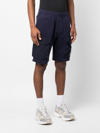Lens-detail cotton cargo shorts Highlights - Navy blue - Cotton - Signature lens detail - Logo patch to the side - Elasticated waistband - Two side inset pockets - Two side cargo pockets - Above-knee length Made in United Kingdom Composition Cotton 100%, Polyamide 100% SIZE & FIT Model measurements Height 6 ft 1 in(1.85 m) Bust/Chest 38.58 in(98 cm) Hips 37 in(94 cm) Waist 30.31 in(77 cm) FittingInformation Designed for a regular fit, offering an even fit over the leg Adjust this piece’s waistband to your preference using the drawstring Made from a midweight non-stretch fabric, this piece offers minimal elasticity when worn This piece fits true to size – take your usual size Washing instructions Machine Wash
