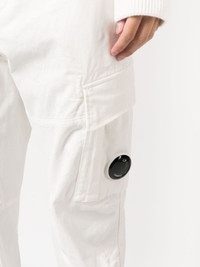 Lens-detail cotton trousers Highlights - White - Stretch-cotton - Logo plaque - Belt loops - Front button and zip fastening - Tapered leg - Mid-rise - Two side inset pockets - Two rear flap pockets - Two side cargo pockets - C.p. company suggests removing any detachable accessories before washing. Imported Composition Cotton 98%, Spandex/Elastane 2% SIZE & FIT Model measurements Height 6 ft 1 in(1.86 m) Bust/Chest 36.61 in(93 cm) Hips 37 in(94 cm) Waist 28.74 in(73 cm) Washing instructions Machine Wash