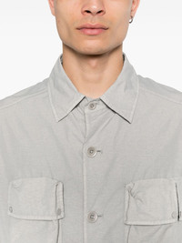 Flatt cargo shirt jacket Highlights - Light grey - Garment dyed - Signature lens detail - Classic collar - Long sleeves - Sleeve patch pocket - Buttoned-cuff sleeves - Front flap pockets - Drawstring straight hem - Front button fastening - C.p. company suggests removing any detachable accessories before washing. Made in Italy Composition Polyamide 100% SIZE & FIT Model measurements Height 6 ft 1 in(1.85 m) Bust/Chest 35.82 in(91 cm) Hips 37.79 in(96 cm) Waist 29.13 in(74 cm) FittingInformation Designed for a relaxed fit, this piece allows for comfort and movement when worn The adjustable drawstring means that you can adjust this piece’s fit to suit your comfort and preference Made from a lightweight non-stretch fabric This piece fits true to size – take your usual size