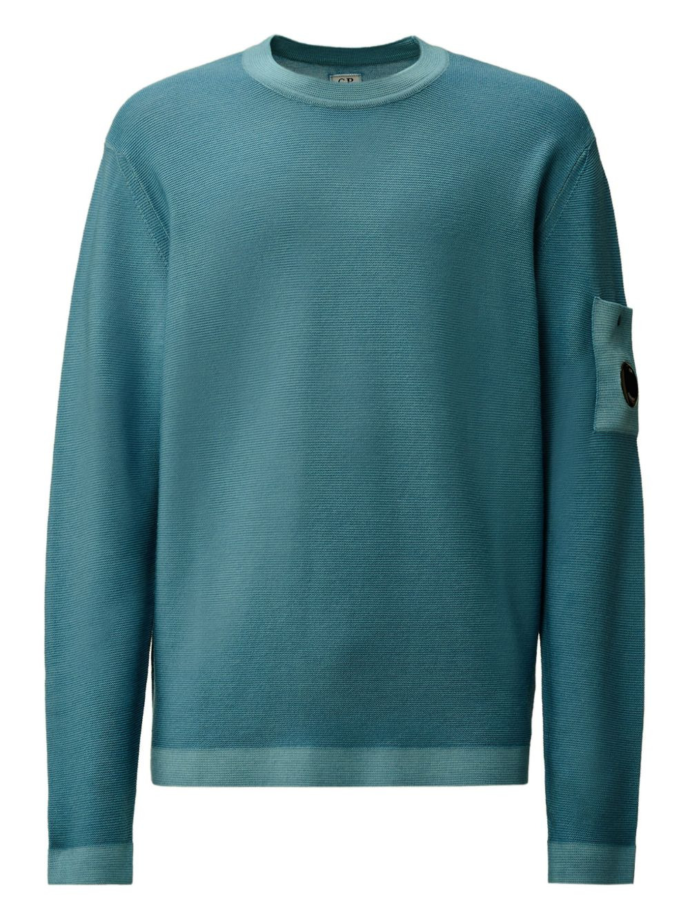 Lens-detail sweatshirt Highlights - Teal blue - Sleeve zip pocket - C.p. company suggests removing any detachable accessories before washing. Imported Composition Wool 100% Washing instructions Read Manufacturer Guidelines