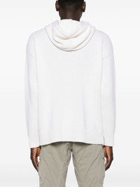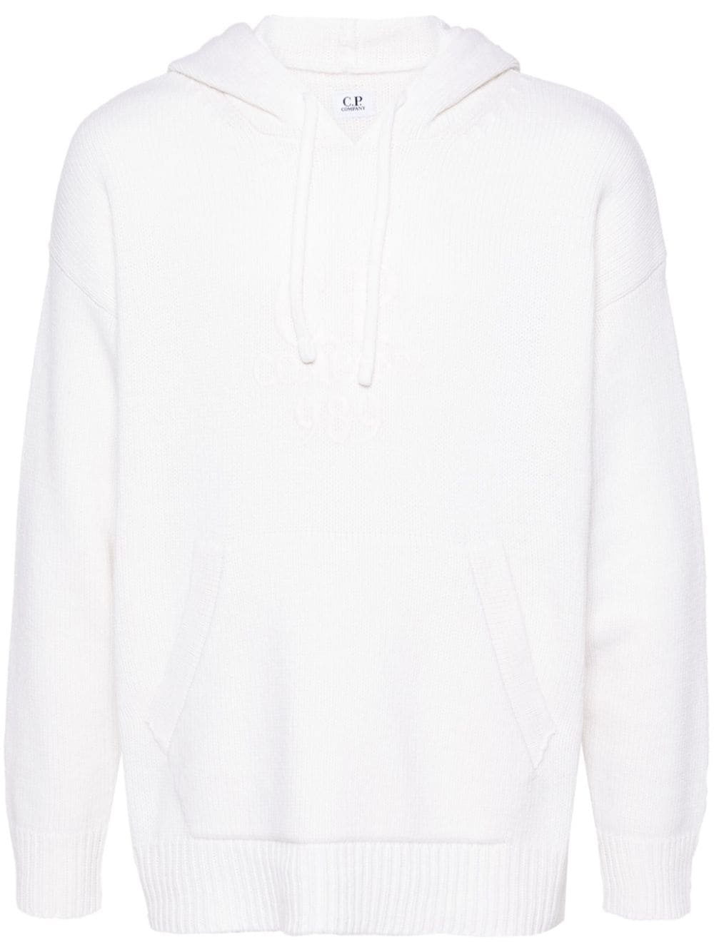 logo-embroidered knitted hoodie Highlights - White - Wool blend - Knitted construction - Embroidered logo to the front - Drawstring hood - Long sleeves - Ribbed cuffs and hem - Front pouch pocket Imported Composition Wool 80%, Polyamide 20% SIZE & FIT Model measurements Height 6 ft 2 in(1.87 m) Bust/Chest 36.41 in(92.5 cm) Hips 37 in(94 cm) Waist 29.52 in(75 cm) FittingInformation Designed to be unstructured, offering a loose fit throughout Made with a midweight knit, this piece offers some stretch This piece fits true to size – take your usual size