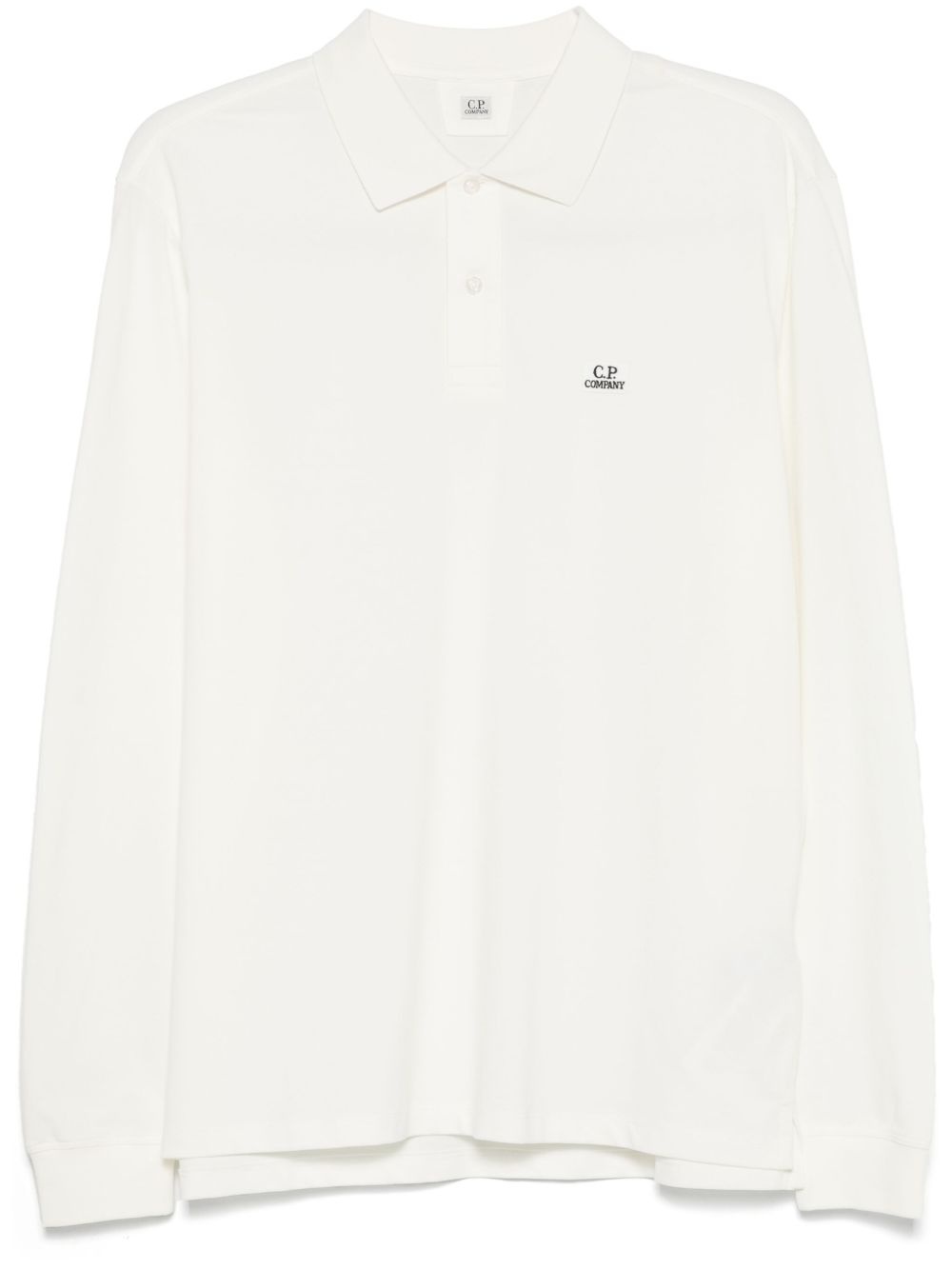 logo-patch polo shirt Highlights - White - Short front button fastening - Ribbed cuffs - Side slits - Long sleeves Imported Composition Cotton 95%, Spandex/Elastane 5%