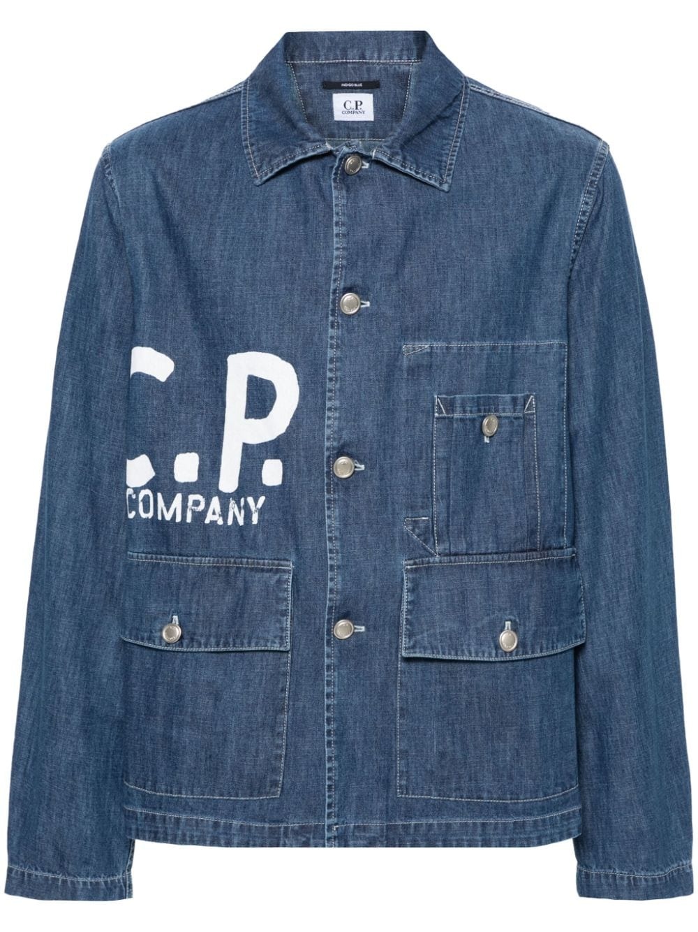 logo-print denim jacket Highlights - Blue - Cotton - Denim - Logo print to the front - Classic collar - Long sleeves - Buttoned cuffs - Front patch pocket - Front flap pockets - Front button fastening Imported Composition Polyurethane Resin 100%, Cotton 100% Washing instructions Machine Wash