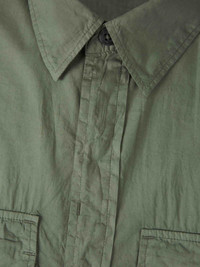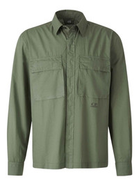 logo-print shirt jacket Highlights - Olive green - Concealed front button fastening - Two chest flap pockets - Long sleeves - Buttoned cuffs Imported Composition Cotton 100%