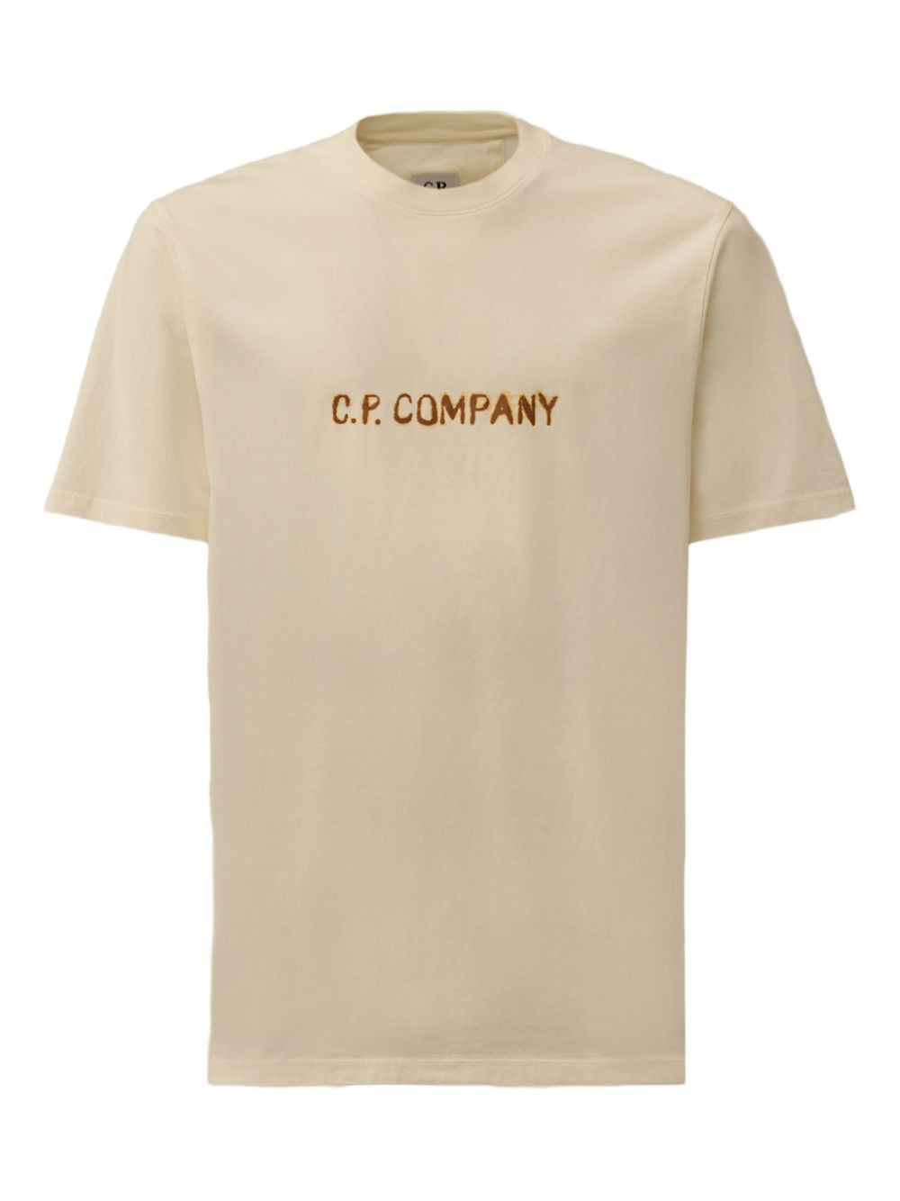 logo-print T-shirt Highlights - Off-white - Short sleeves - Crew neck - Brown logo print - C.p. company suggests removing any detachable accessories before washing. Imported Composition Cotton 100% Washing instructions Read Manufacturer Guidelines