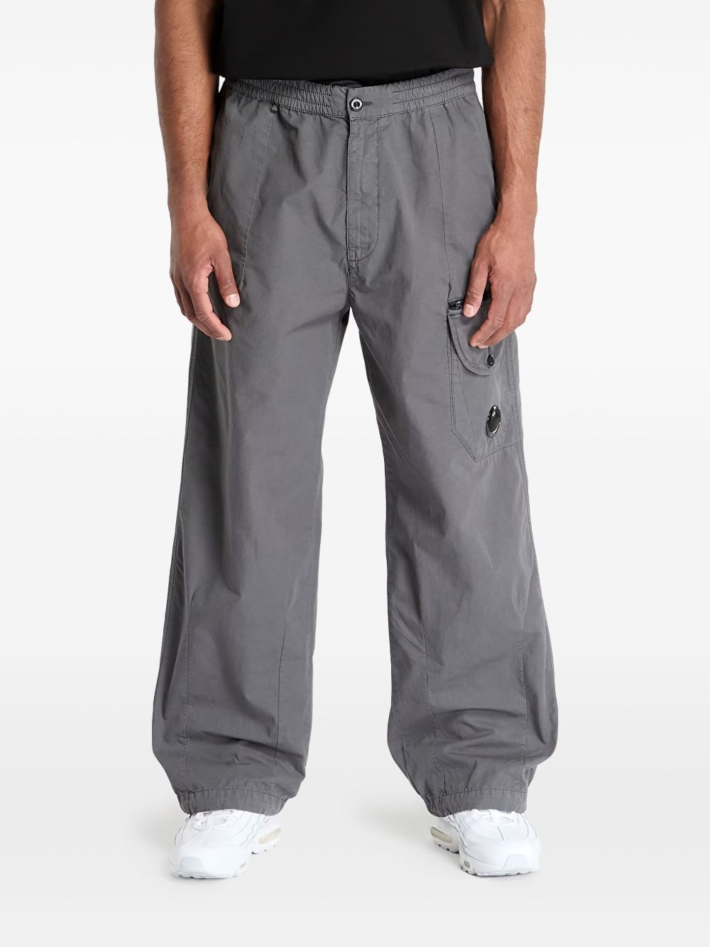 Microreps Boxy cargo trousers Highlights - Grey - Front button and zip fastening - Elasticated waistband - Two side inset pockets - Rear patch pocket Imported Composition Cotton 100%