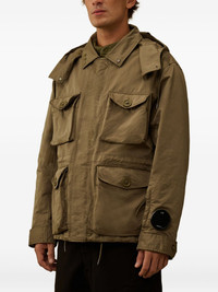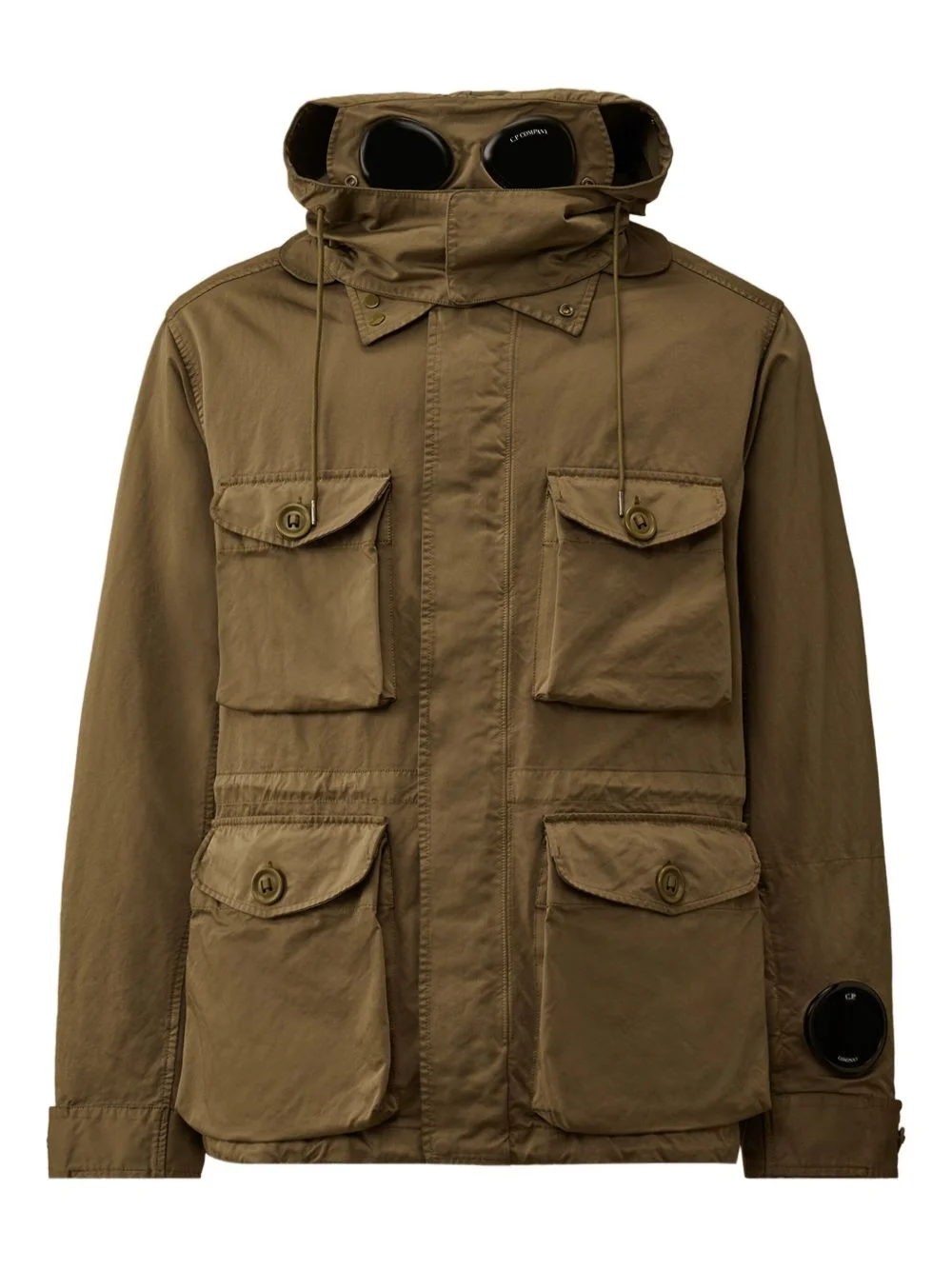 Mille hooded jacket Highlights - Olive green - Signature goggle detail - Concealed press-stud fastening - Multiple flap pockets - Long sleeves - Buttoned cuffs - C.p. company suggests removing any detachable accessories before washing. Imported Composition Polyester 66%, Polyamide 34% Washing instructions Read Manufacturer Guidelines